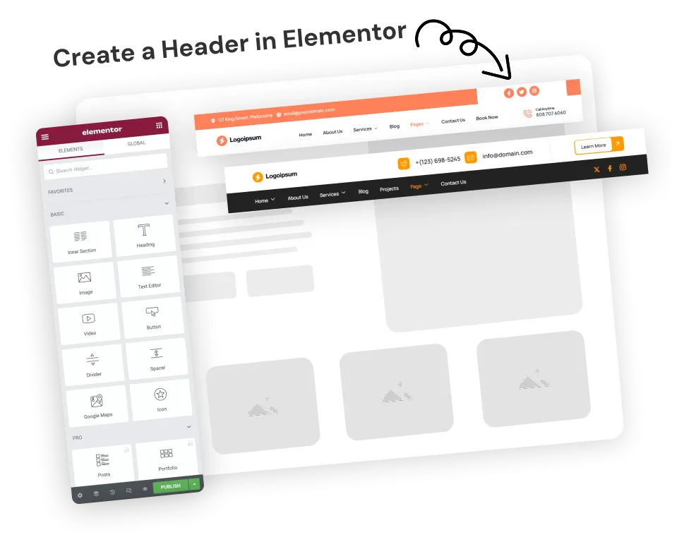 Create stunning headers with a drag-and-drop builder. Choose layouts, add elements, and style them to match your brand identity.